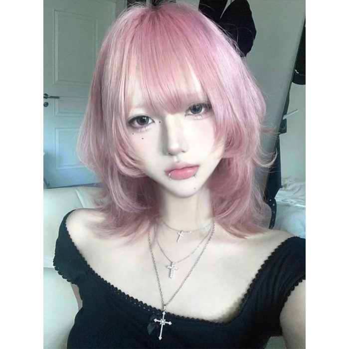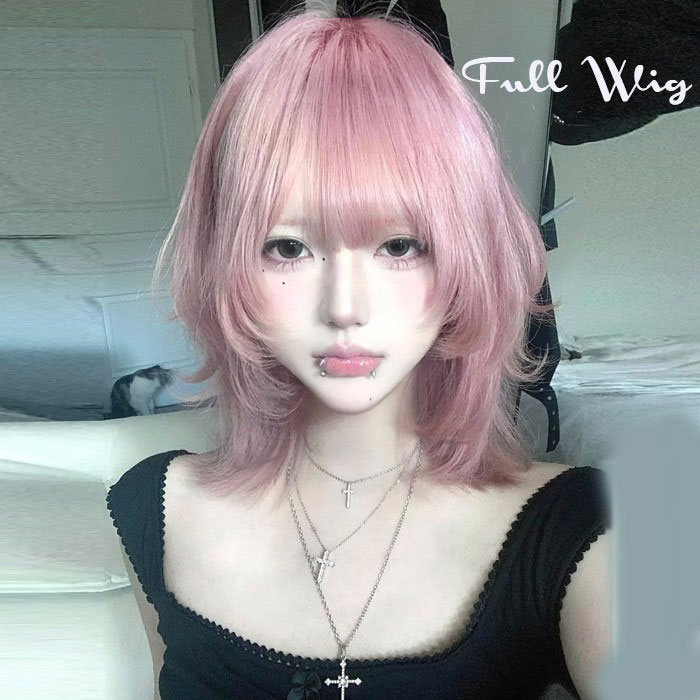ウィッグ ミディアム レイヤーカット 韓国風 フルウィッグ ピンクベージュ シャギー 前髪あり 自然 耐熱 原宿系 レディース ピンクベージュ dp334c0c0m7