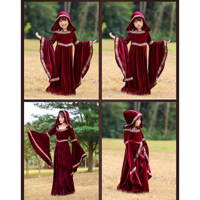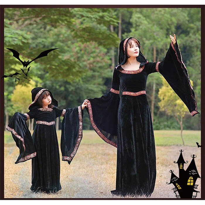 ハロウィン キッズドレス ドレス レディース 親子お揃い 魔女 ウイッチ ハット ロングドレス 袖あり 長袖 ロング丈 コスプレ コスチューム衣装 子供ドレス パーティー 上品 エレガント 女の子 子供 かわいい 演出 イベント ブラック 黒 ワインレッド 110-140 S-XL mj010lclcm7