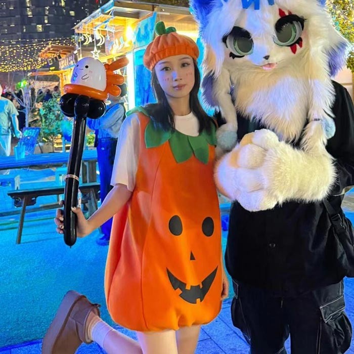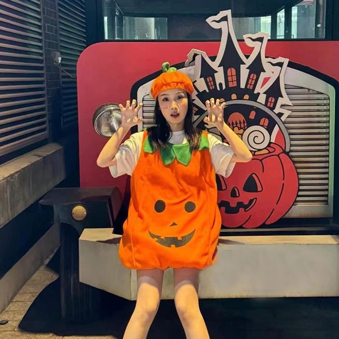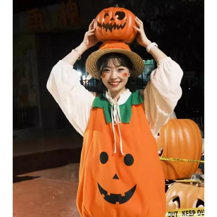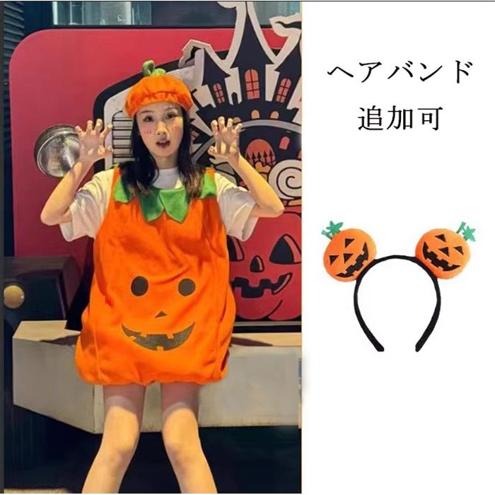 ハロウィン 仮装 コスチューム かぼちゃ 衣装 レディース メンズ キッズ フリーサイズ パーティー 学園祭 イベント コスプレ グッズ ヘアバンド追加可 mj005ldldm7