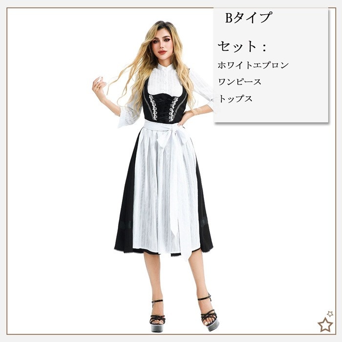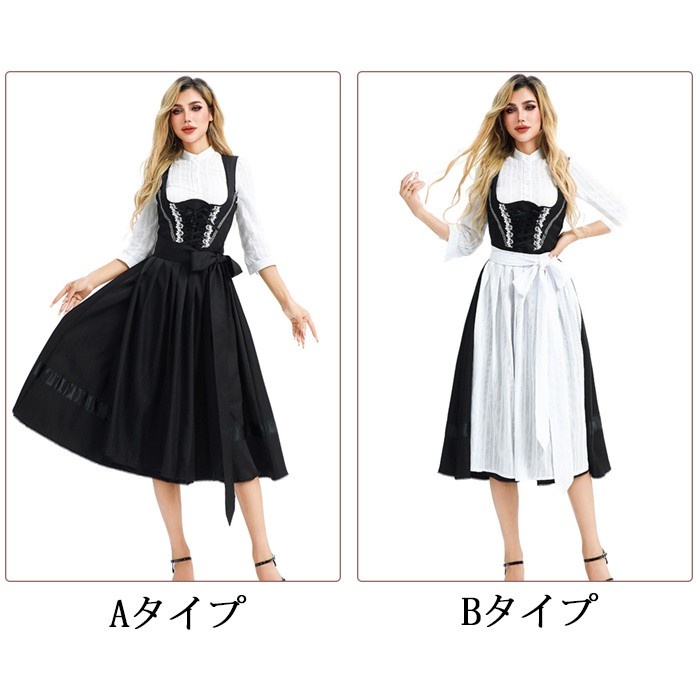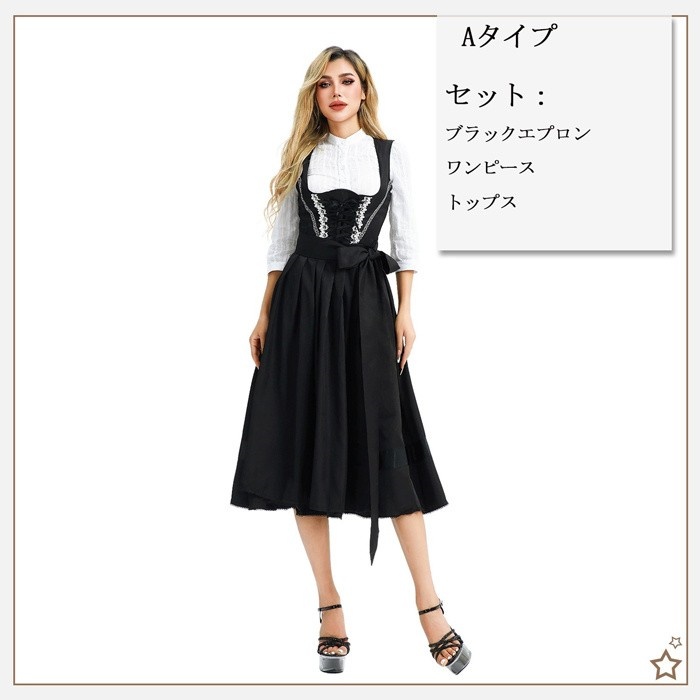 オクトーバーフェスト 衣装 レディース 黒 ワンピース M〜3L ドイツ風 ビール祭り ロング丈 コスチューム ヨーロッパ風 民族衣装風 舞台服 ステージ衣装 仮装 学園祭 文化祭 ハロウィン パーティー イベント 大人用 演出用 mj013x0x0m7