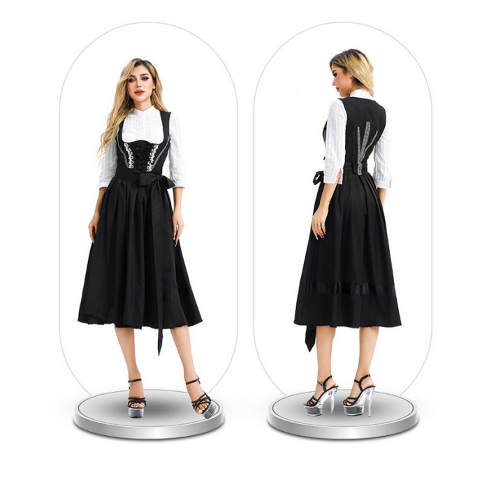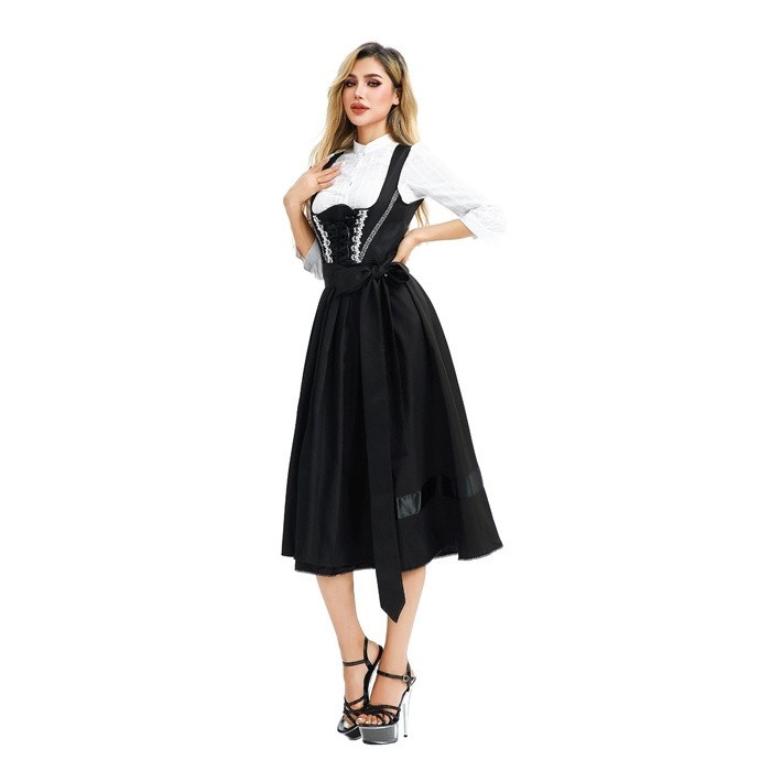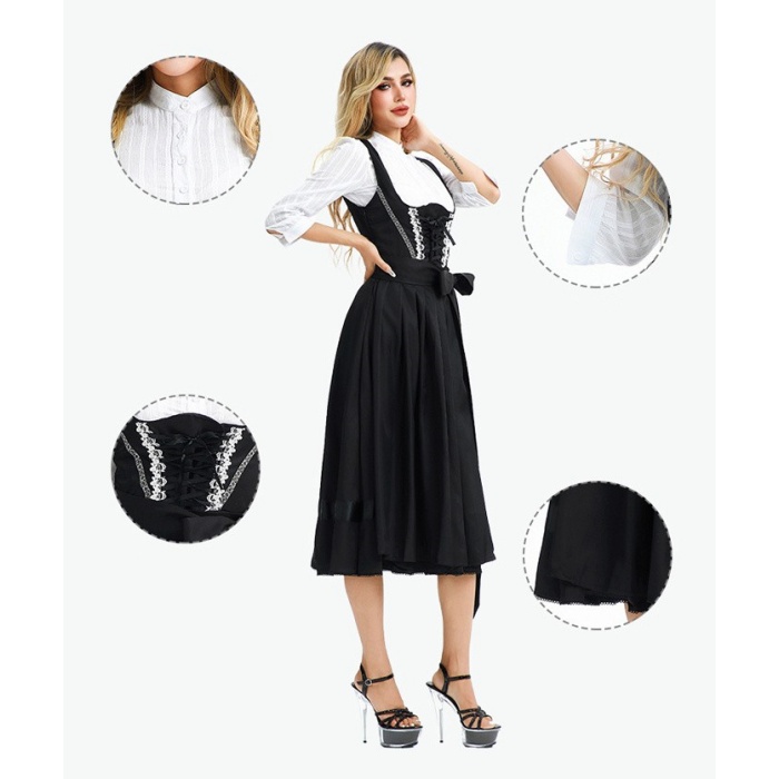 オクトーバーフェスト 衣装 レディース 黒 ワンピース M〜3L ドイツ風 ビール祭り ロング丈 コスチューム ヨーロッパ風 民族衣装風 舞台服 ステージ衣装 仮装 学園祭 文化祭 ハロウィン パーティー イベント 大人用 演出用