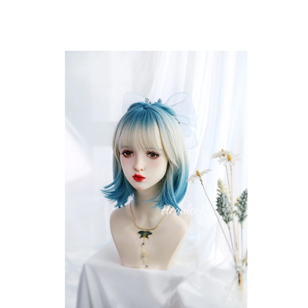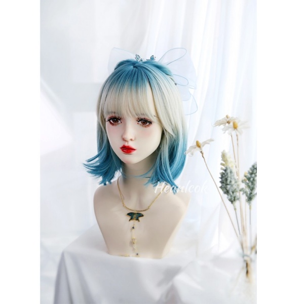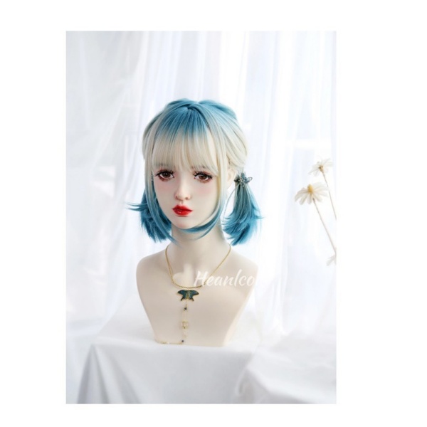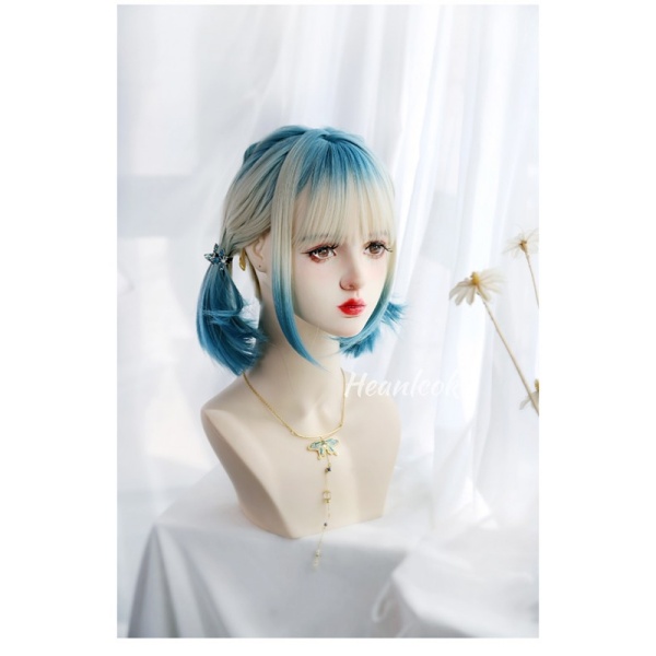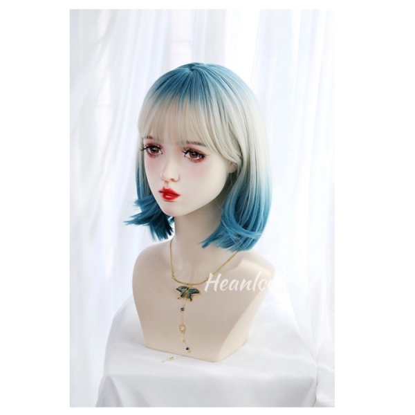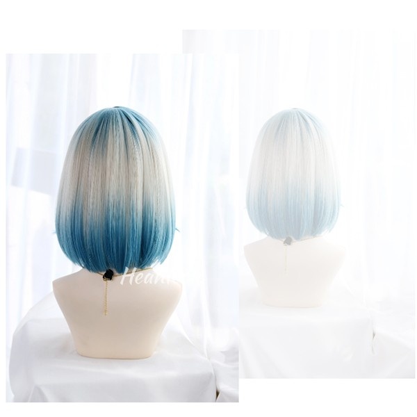 フルウィッグ レディース 前髪あり 原宿風 かつら ぱっつん前髪 おしゃれ 普段使い 日常使い コスプレ 可愛い コスチューム 仮装 大人用 文化祭 イベント 学園祭 文化祭 学芸会 舞台 演劇 変装 ハロウィン ゴールド ブルー