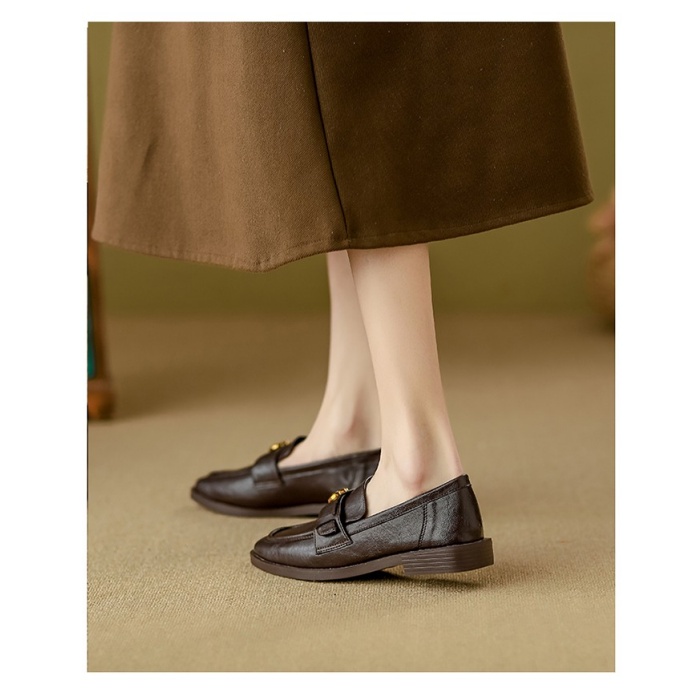 ローファー レディース フラットシューズ 2色展開 通勤 カジュアル 歩きやすい 靴 ブラック レザーシューズ 太ヒール 大きいサイズ 単靴 ブラウン ブラック 22.5-26.0 nt001m7