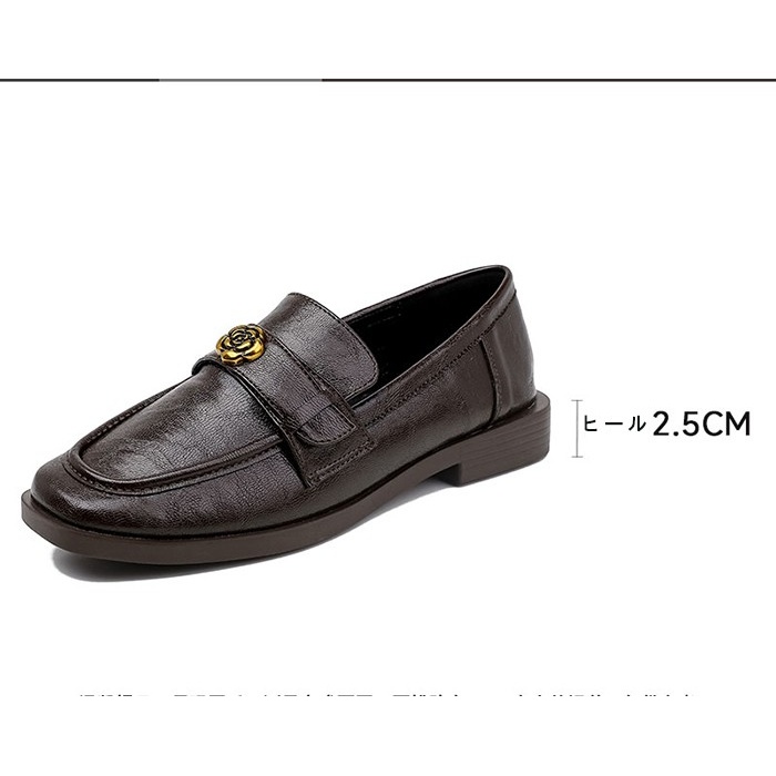 ローファー レディース フラットシューズ 2色展開 通勤 カジュアル 歩きやすい 靴 ブラック レザーシューズ 太ヒール 大きいサイズ 単靴 ブラウン ブラック 22.5-26.0 nt001m7m7m7