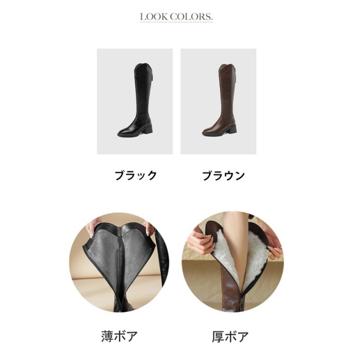 | ◆サイズ | 22.0/22.5/23.0/23.5/24.0/24.5/25.0/25.5 ヒール5cm 筒丈41cm 履き口(外周)36cm ※表記寸法と実寸値の多少の誤差はご容赦ください。 ※甲高・幅広の方には、ワンサイズ上の商品をおすすめ致します |