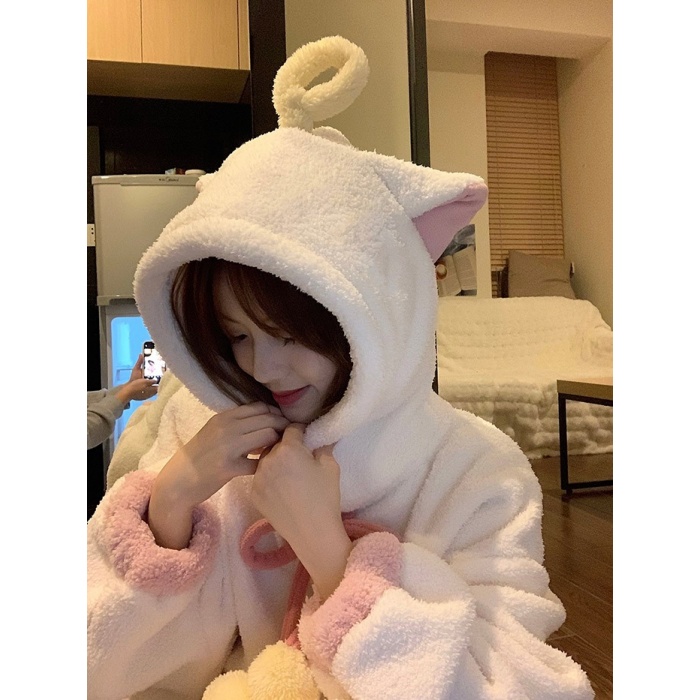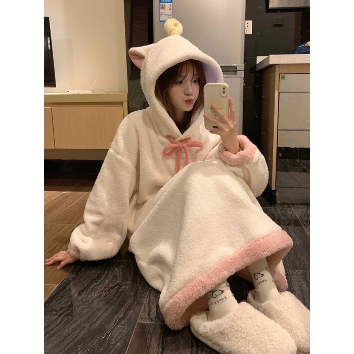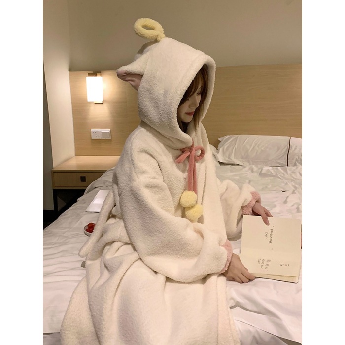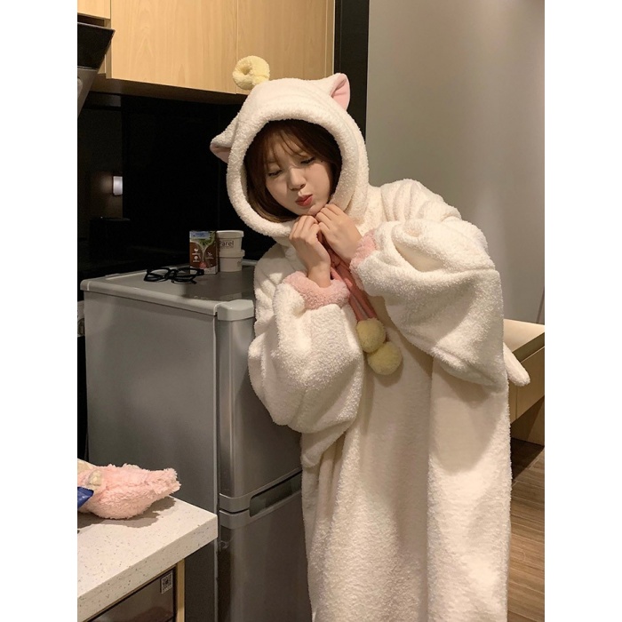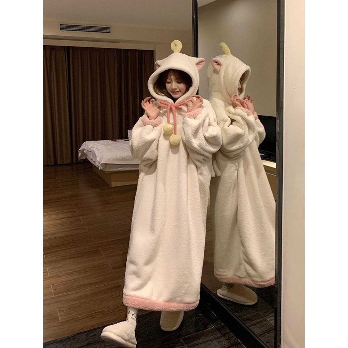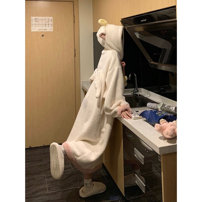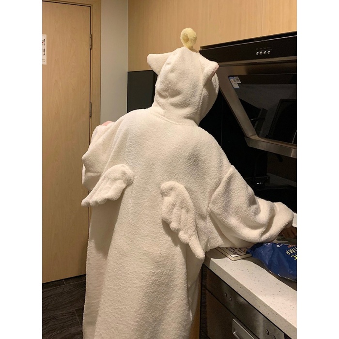 ルームウェア レディース 冬用 着る毛布 長袖 ロング丈 パジャマ ナイトガウン もこもこ 部屋着 前開き フード付き 天使デザイン 羽付き 暖かい あったか 大人用 可愛い ガウン ナイトウェア ギフト プレゼント ns007n1n1m7