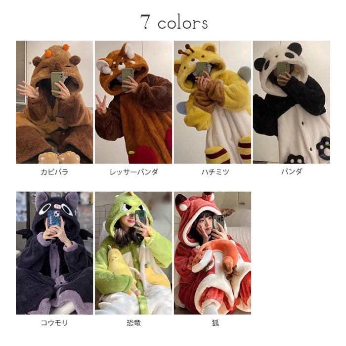 ルームウェア レディース 冬用 長袖 着る毛布 パジャマ 前開き ナイトガウン もこもこ 部屋着 暖かい あったか フード付き 動物 着ぐるみ風 パンダ キリン 恐竜 レッサーパンダ 猫 サンタ コスチューム 可愛い ギフト ns006n1n1m7/p>