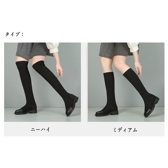 ◆サイズ | 22.0/22.5/23.0/23.5/24.0/24.5/25.0/25.5 タイプ: ミディアム│ニーハイ ※表記寸法と実寸値の多少の誤差はご容赦ください。 ※甲高・幅広の方には、ワンサイズ上の商品をおすすめ致します |