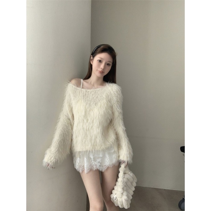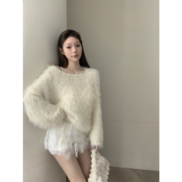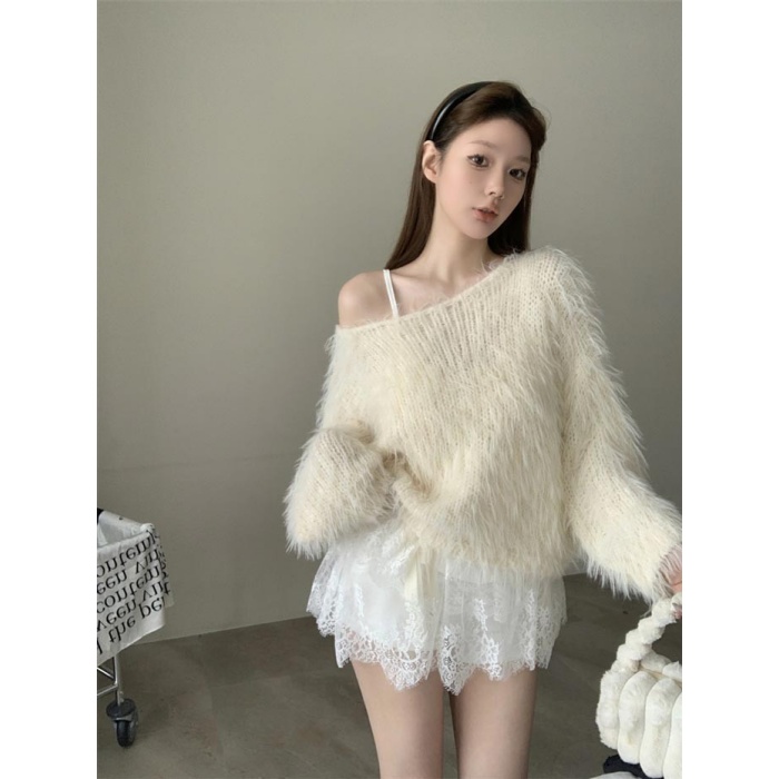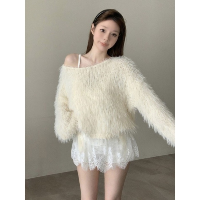 シャギーニット セーター レディース 長袖 ゆったり 秋冬 ニットトップス ふわふわ 暖かい シンプル 無地 大人可愛い オーバーサイズ カジュアル 体型カバー オフホワイト 韓国風 おしゃれ 上品 厚手 ニット プルオーバー トップス 冬服 秋服 nk003m3m3m7