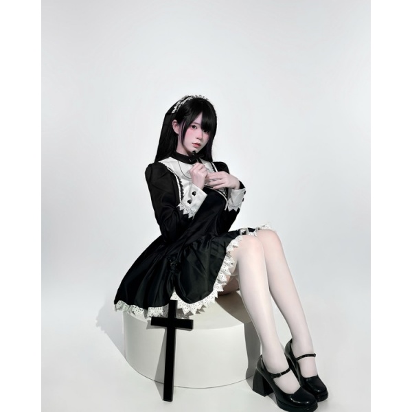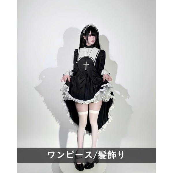 ダークゴシック シスター ドレス 女姓用ハロウィン コスプレ サブカル ゴスロリ刺繍クロス 甘クール 修道服 悪魔 天使 聖女 黒 ブラック パーティー 舞台 演出 コスチューム mj011zuzum7