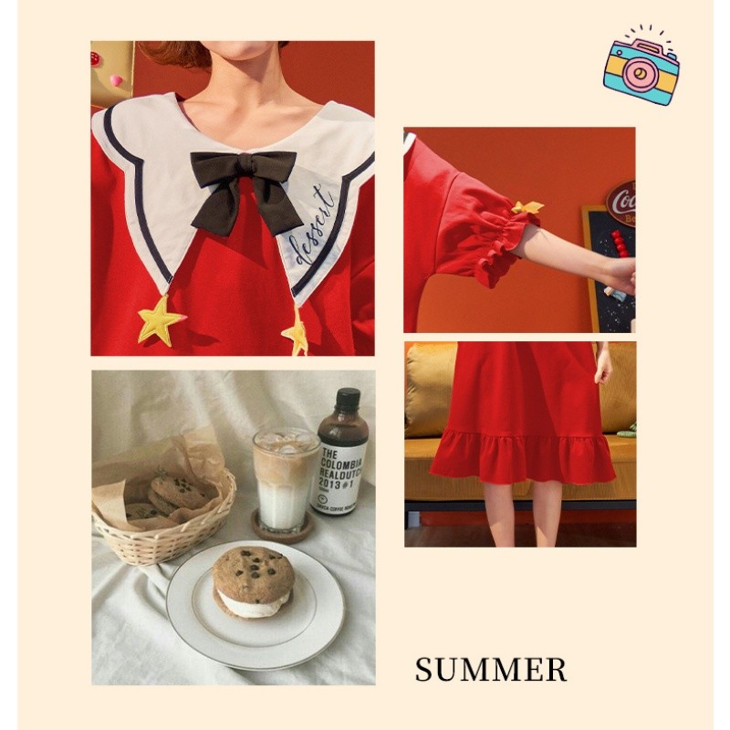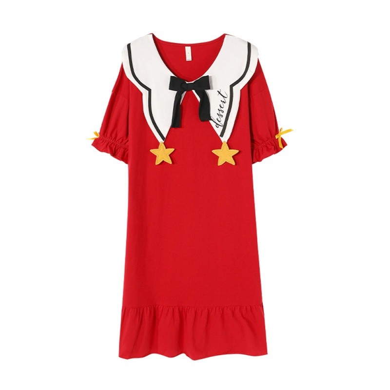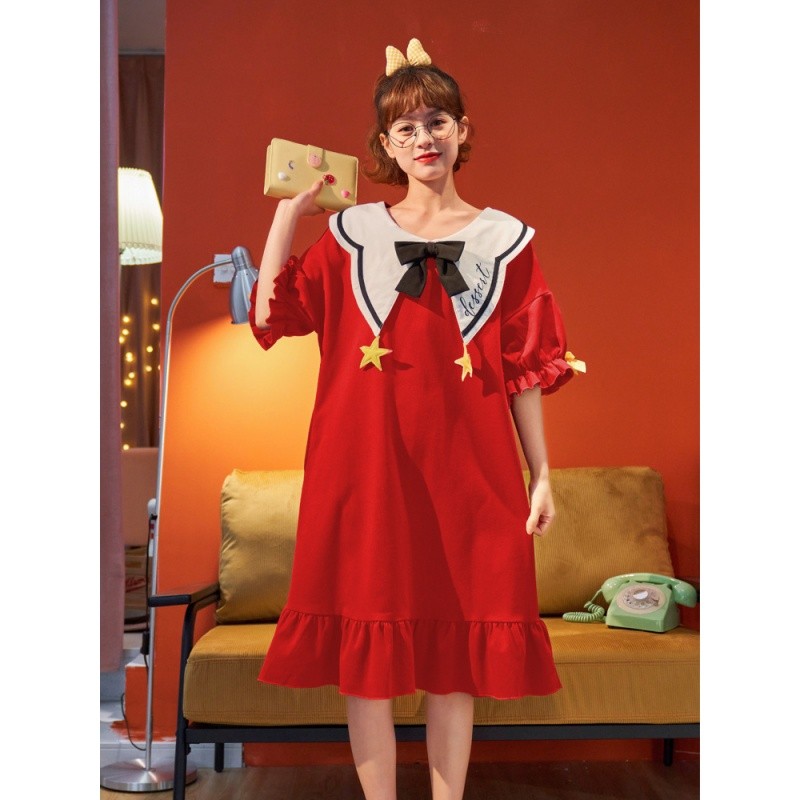 ルームウェア パジャマ セーラー風 ワンピース 上下セット 半袖 かわいい リボン お家時間 ゆめかわ フリル 部屋着 寝間着 サマーパジャマ 春 夏 コットン 女性 かわいい 大きいサイズ ぽっちゃり レディース 誕生日 ギフト 結婚祝い プレゼント レッド dh002m7m7m7