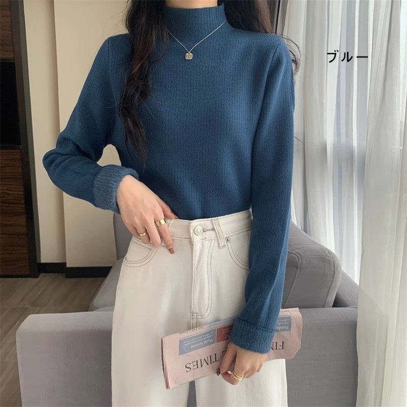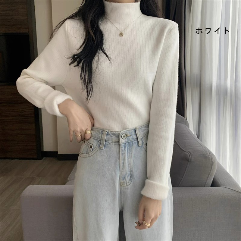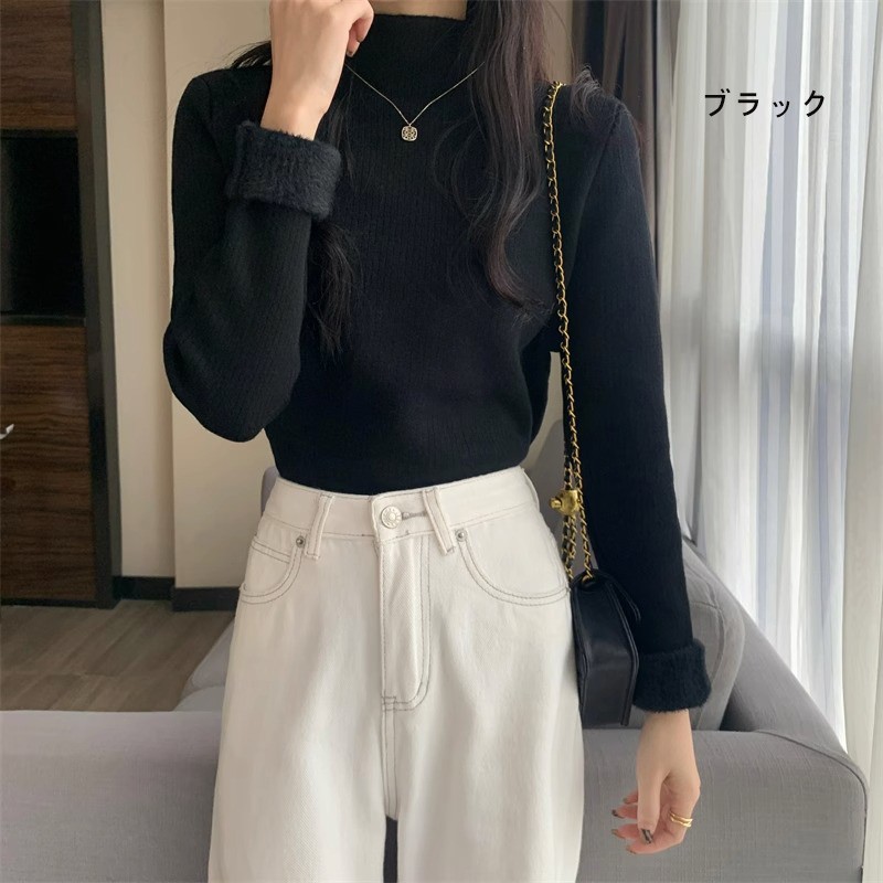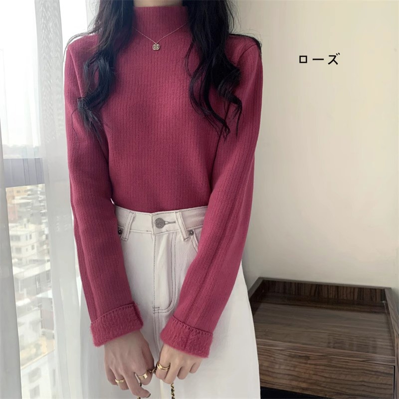 レディース ニット セーター 秋冬 プルオーバー 裏起毛 あったか 保温 トップス ハイネック風 インナー 厚手 長袖 ブラック ベージュ ホワイト 着回し 無地 カジュアル nk001m7m7m7