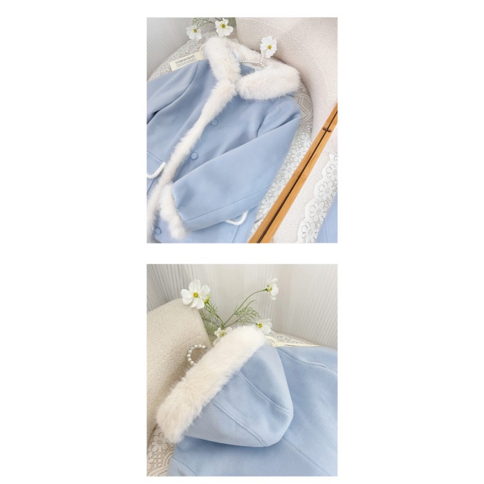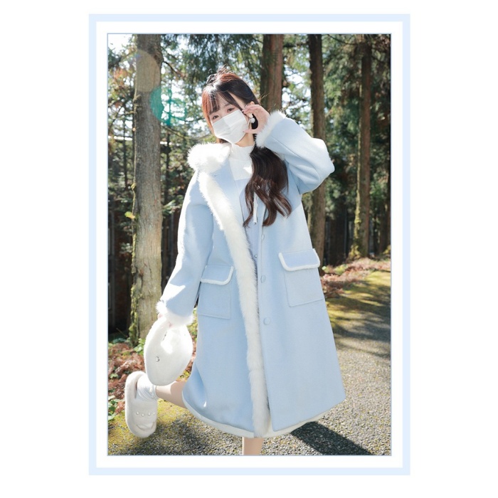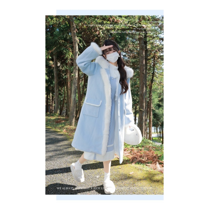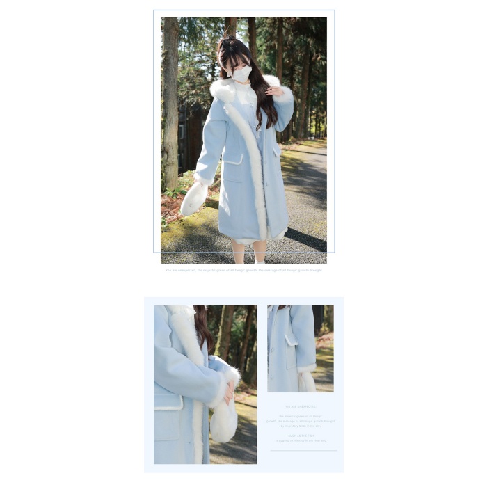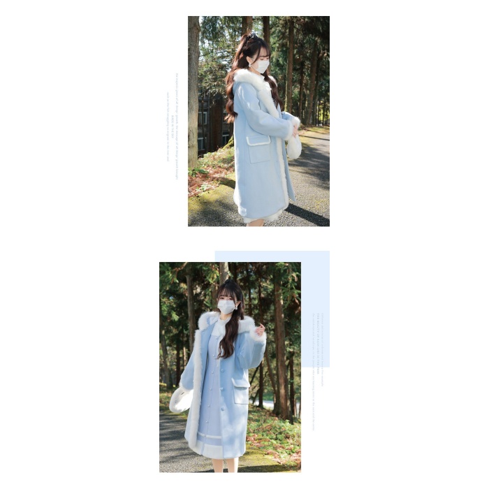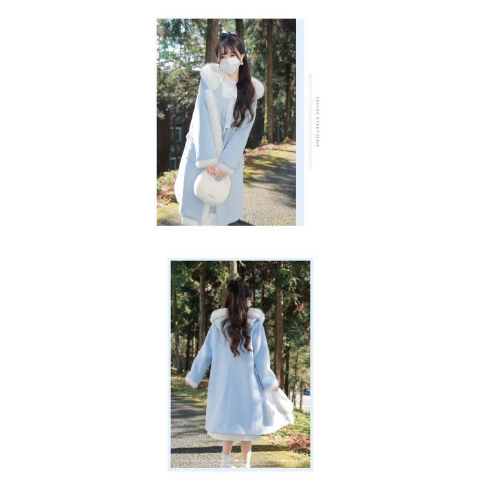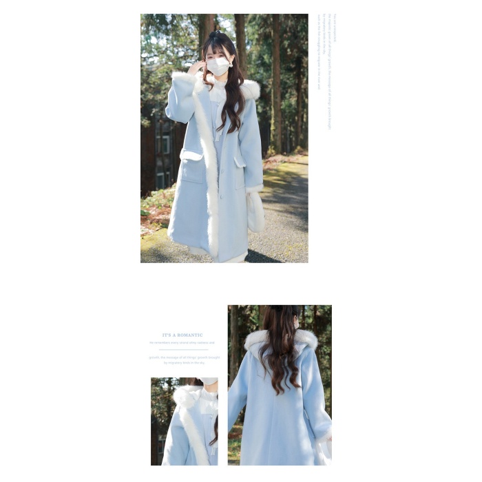 2タイプ ロングコート 通常丈 ロング丈 レディース 冬 フード付き 裏起毛 厚手 暖かい アウター ブルー かわいい 甘め ガーリー フェミニン おしゃれ 防寒 通勤 通学 md006lclcm7
