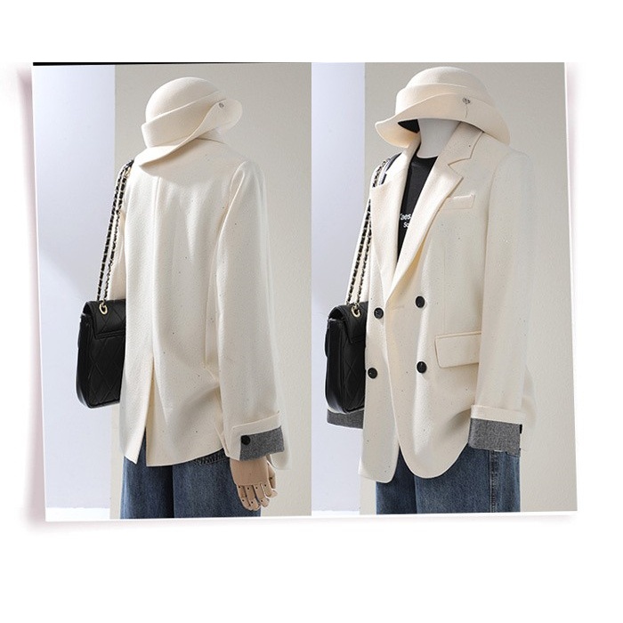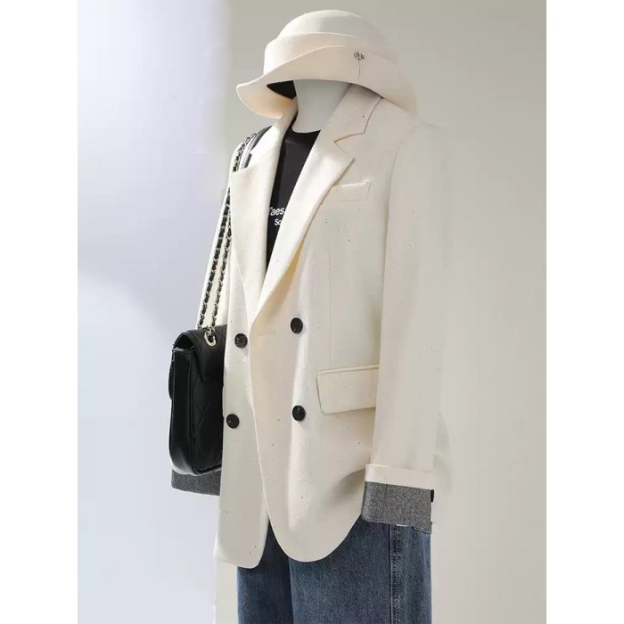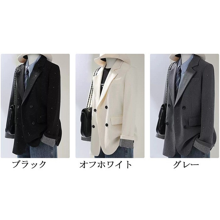ジャケット レディース ブラック ダブルボタン オーバーサイズ 長袖 秋 冬 通勤 デート 学園祭 カジュアル ショートコート シンプル S M L 2L 3L 4L ブラック/グレー/オフホワイト