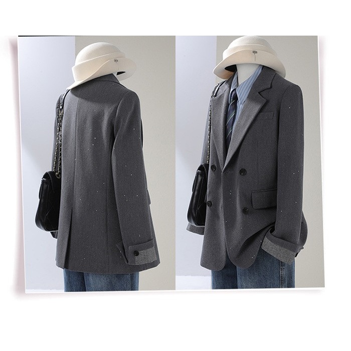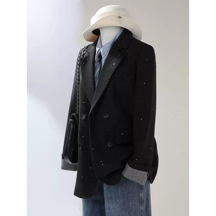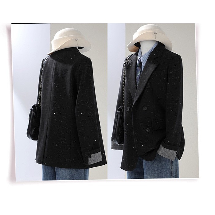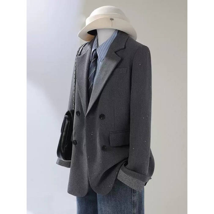 ジャケット レディース ブラック ダブルボタン オーバーサイズ 長袖 秋 冬 通勤 デート 学園祭 カジュアル ショートコート シンプル S M L 2L 3L 4L ブラック/グレー/オフホワイト md001x0x0m7