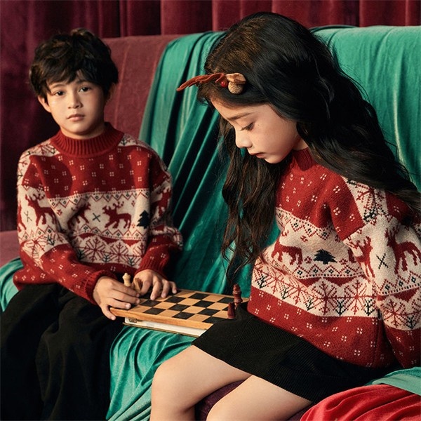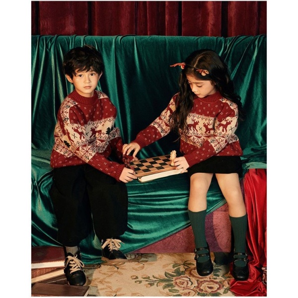 【クリスマス/お正月】男女子用 毛糸セーター 秋冬新作 サンタ風 赤色 上着 韓国風 ベビー 厚手 裏起毛 プルオーバー ニット セーター キッズ 冬服 100-170cm mm029z7z7m7