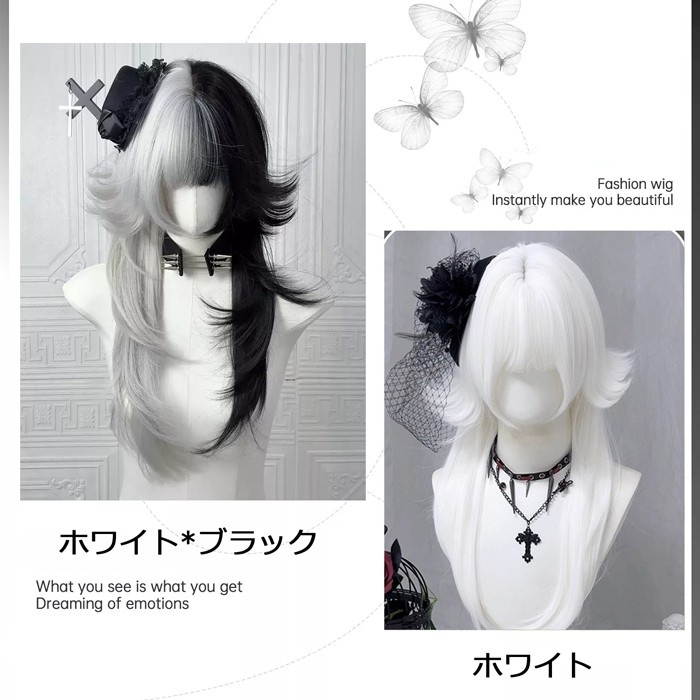 | ◆セット内容 | ウィッグ/ヘアネット 【※こちらの商品は、個人差等ございますので、 商品ご到着後、お客様ご自身より手くしやカット等多少の調節が必要な場合もございます。】 (記載のないアクセサリー、小物等は付属しません) |