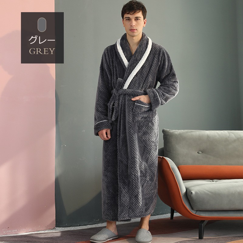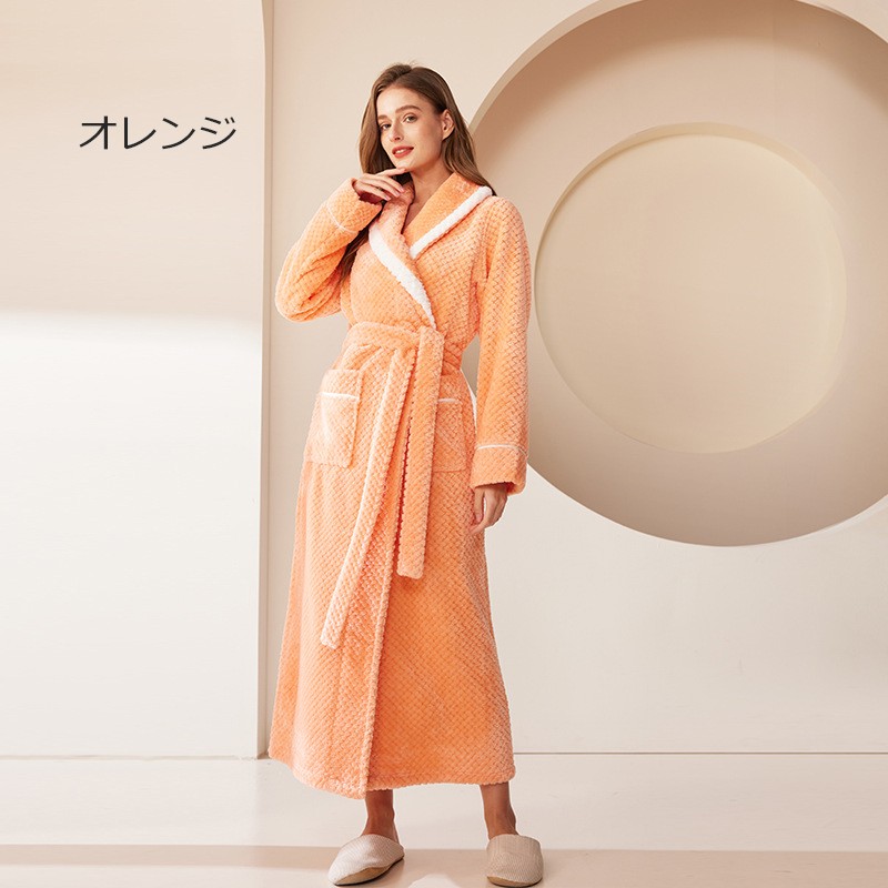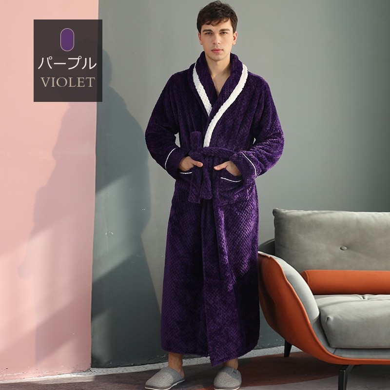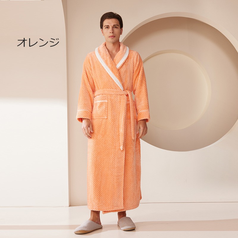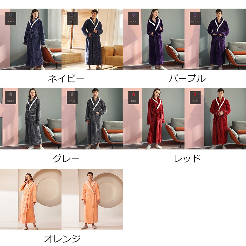 ナイトガウン メンズ ルームウェア もこもこ ペアパジャマ レディース 冬 長袖 寝巻き カップル 前開き 裏起毛 可愛い 部屋着 お揃いペア 結婚祝い プレゼント 暖かい グレー ネイビー パープル レッド オレンジ dh006m7m7m7