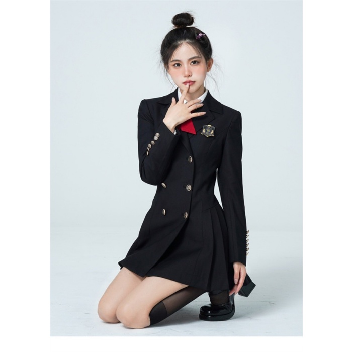 卒業式 入学式 女の子 フォーマル ロングコート ワンピース風 キッズ シャツ リボン ブローチ 通年対応 XS-3L ma008z7z7m7