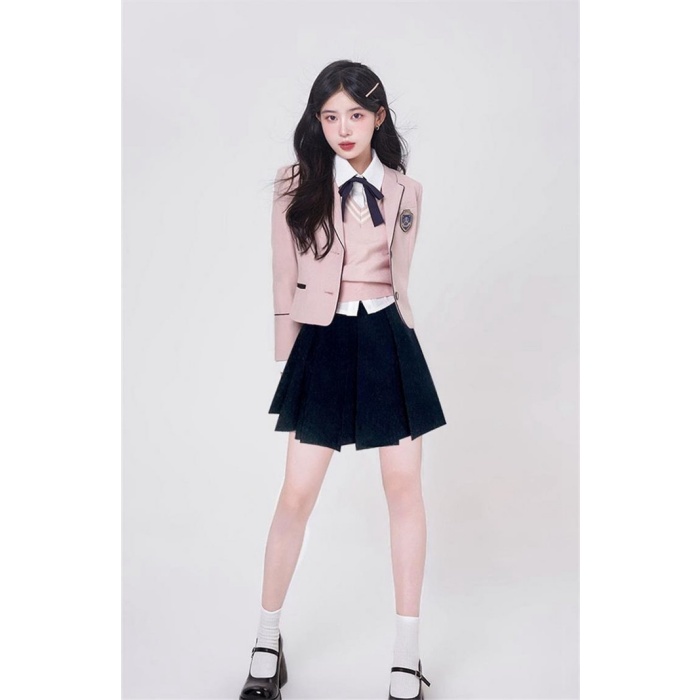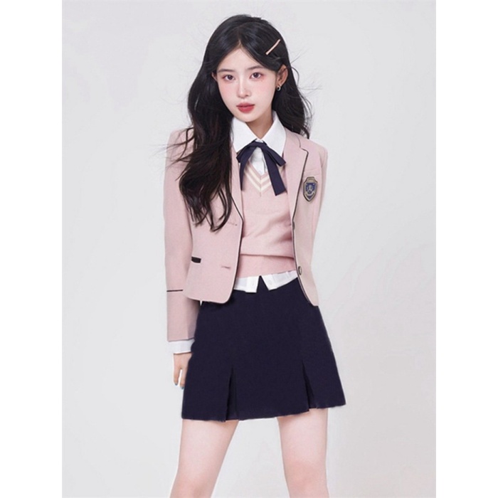 卒業式 入学式 レディース フォーマル 5点セット ジャケット ベスト シャツ スカート リボン 通年対応 S-2L ピンク グレー