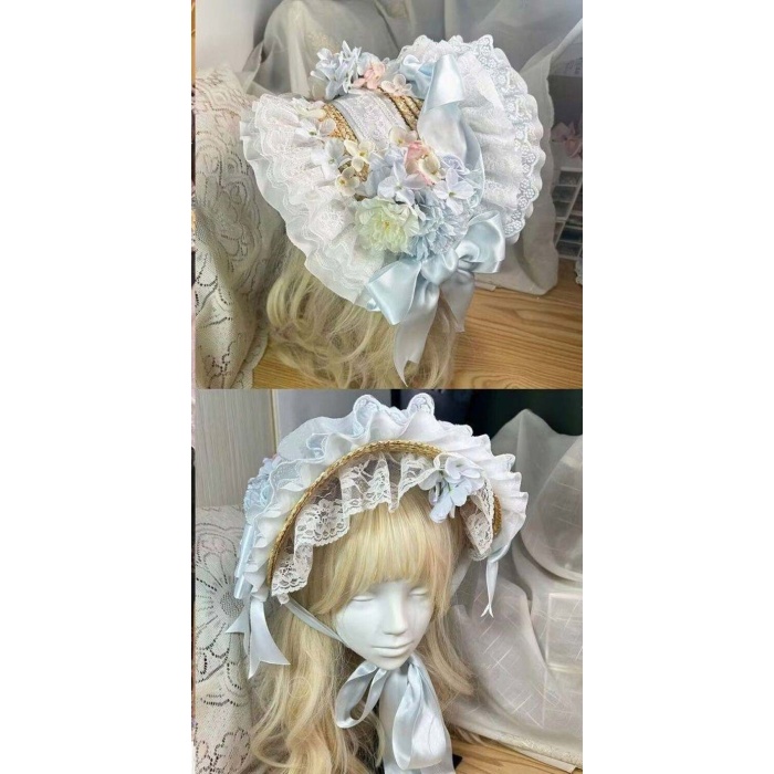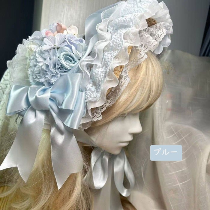 ロリータ ハット フラワー付き レース ボンネット 青 ピンク リボン ストローハット ロマンティック ロリータファッション 結婚式 発表会 ガーリー おしゃれ ヘッドドレス 花飾り レディース 可愛い コスプレ おしゃれ小物 mj079c0c0m7