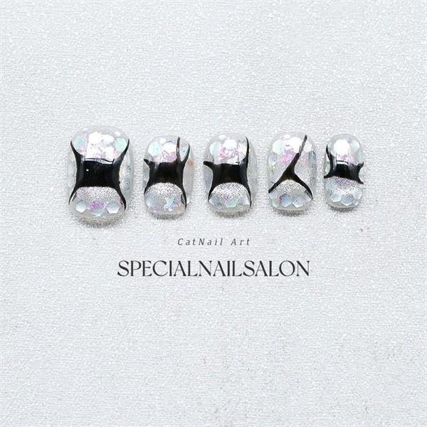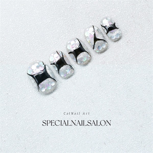 手作り着け爪 高級感溢れる個性派デザイン 不規則ライン カラーコントラスト ラメ 小さなビンテージ風ネイルチップ 簡単に装着でき 繰り返し使用可能nm009z7