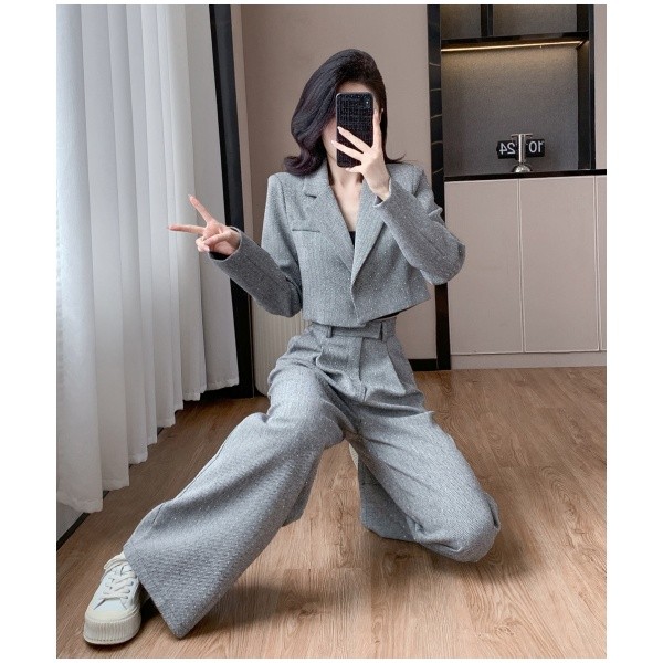 パンツ セットアップ 大きいサイズ レディース フォーマル 卒業式 入学式 ママスーツ ワイドパンツ 体型カバー 20代 30代 40代 50代 グレー S M L 2L mb006m7