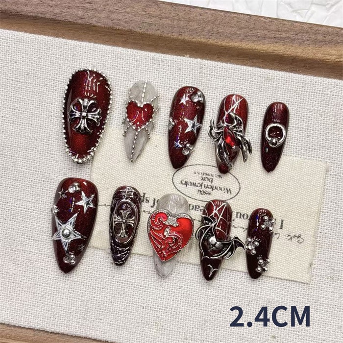 ネイルチップ 地雷系 量産型 ハンド用 10枚入り ボルドー レッド マグネット ニュアンス 3D パーツ 十字架 クロス 蜘蛛 クモ ハート 星 スター パンク ゴシック サブカル 付け爪 華やか 派手め イベント ライブ コスプレ 個性的 おしゃれ nc059x1