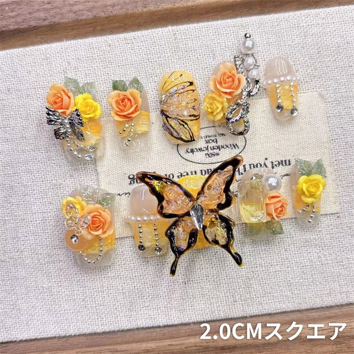ネイルチップ バタフライ 3D フラワー ローズ 10枚入り 付け爪 オレンジ イエロー ポイント ロング 大ぶり 蝶 花 パール オーロラ ビタミンカラー 地雷系 量産型 サブカル 派手 豪華 ニュアンス 撮影用 イベント 推し活 結婚式 成人式 ギフト プレゼント nc057x1