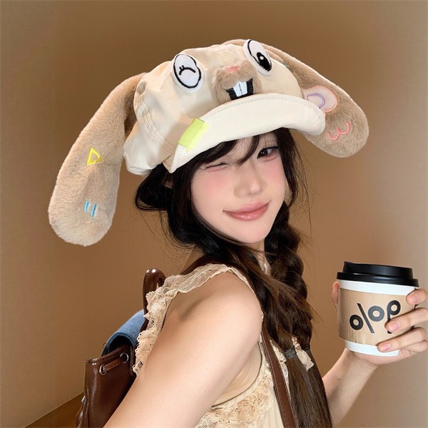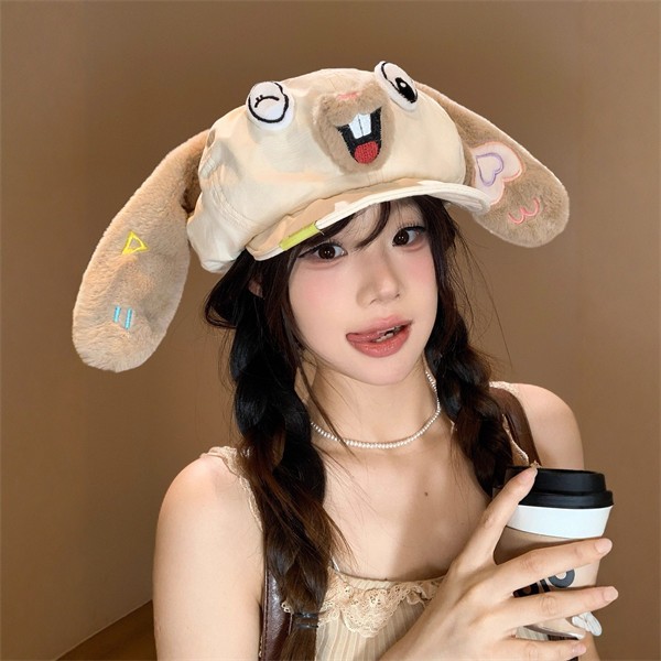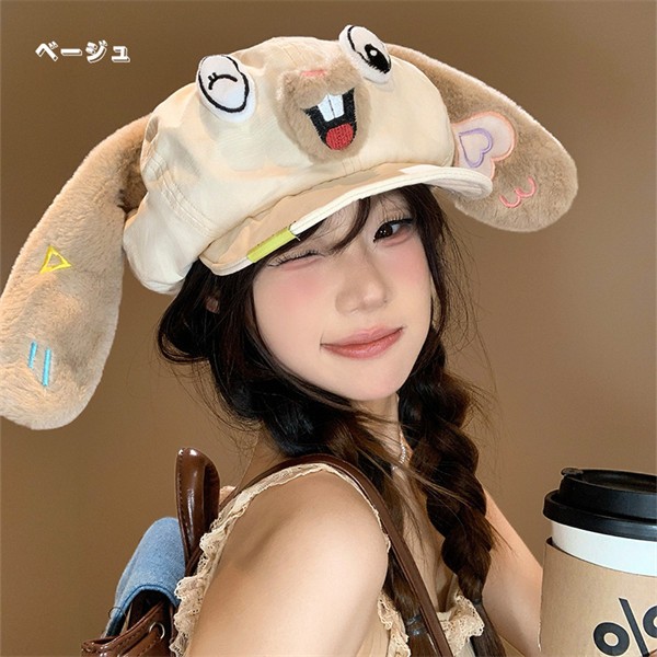 カートゥン風 うさみみ ベレー帽 レディース 春秋冬 小顔効果 大きめ頭囲対応 八角帽 画家帽 マリン帽 レトロ 可愛い ガーリー おしゃれ 暖かい 無地 フリーサイズ お出かけ デート コーデ アクセント ベージュ ブラック nm001z7zq