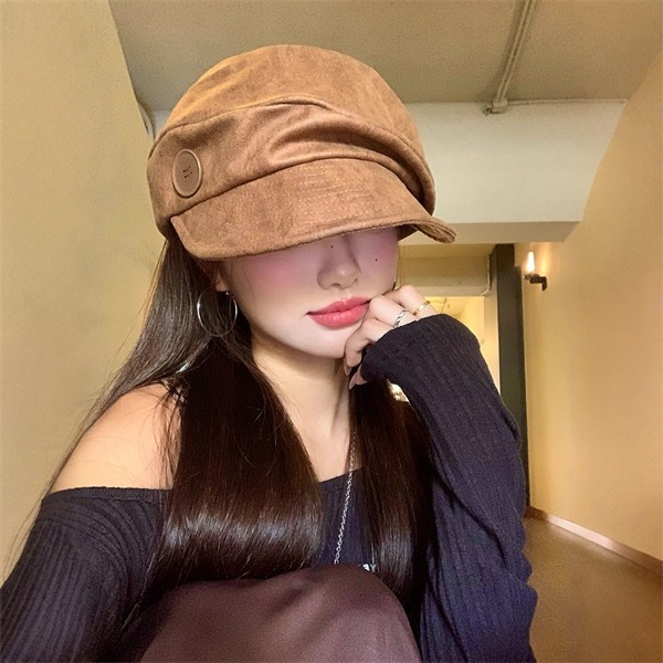 ボタン付き レトロ ベレー帽 レディース 秋冬 新作 小顔効果 韓国風 八角帽 学院風 シンプル 文芸風 画家帽 マリン帽 おしゃれ 可愛い 暖かい 防寒 無地 フリーサイズ デート お出かけ コーデ アクセント ブラウン ブラック nm002z7zq